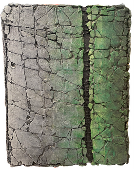 "Painting has always served as an expressive medium for me, allowing me to convey strong emotions at any moment in time, onto surface. Within painting, I am interested in colour, tactile surfaces, pattern and how paint behaves on a given surface. I have always been fascinated by tactile surfaces. Within my past works, I immersed myself in a variety of materials found from the everyday - tile grout, latex paint, powder pigments, spices, tablecloths, doily pieces, enamel paints and fabrics. I experimented with cheesecloth and tile grout to create tactile surfaces and soon discovered the 'cracked' surface. Cracking tile grout on fabric, I build a sensual surface texture. If the viewer cannot physically touch the work, they can imaginatively feel the surface. I have a sensitivity to colour, layering colour washes over and over again.