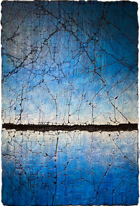 "Painting has always served as an expressive medium for me, allowing me to convey strong emotions at any moment in time, onto surface. Within painting, I am interested in colour, tactile surfaces, pattern and how paint behaves on a given surface. I have always been fascinated by tactile surfaces. Within my past works, I immersed myself in a variety of materials found from the everyday - tile grout, latex paint, powder pigments, spices, tablecloths, doily pieces, enamel paints and fabrics. I experimented with cheesecloth and tile grout to create tactile surfaces and soon discovered the 'cracked' surface. Cracking tile grout on fabric, I build a sensual surface texture. If the viewer cannot physically touch the work, they can imaginatively feel the surface. I have a sensitivity to colour, layering colour washes over and over again.